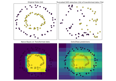n_out <= n_estimators * max_leaf_nodes. Ifmax_leaf_nodes == None, the number of leaf nodes is at mostn_estimators * 2 ** max_depth.For an example of applying Random Trees Embedding to non-linear classification, see Hashing feature transformation using Totally Random Trees.